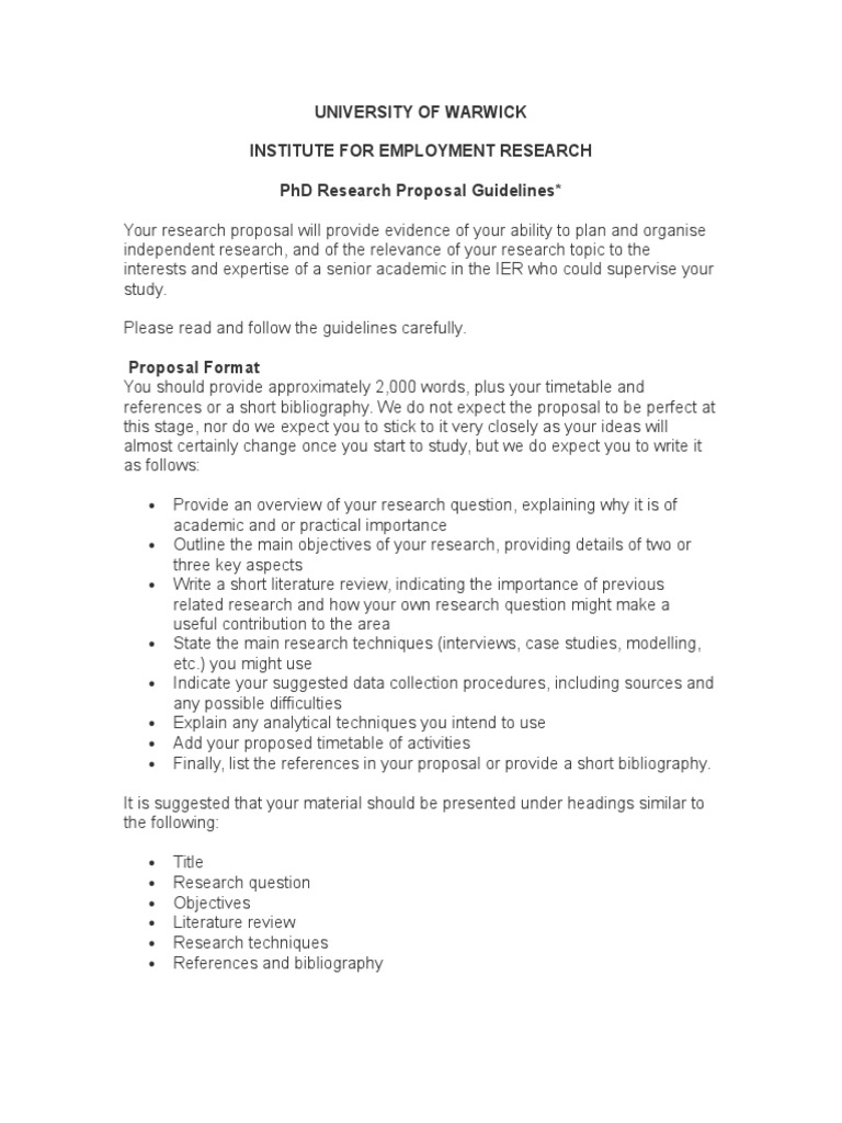 The proposal should be written in size 12 font and should be limited to 15 pages. BACKGROUND Describe current state of the art. Why is this research needed? Outline previous work in this field (i.e. literature search). How would the results of the proposed research fill this need and be beneficial? OBJECTIVE (s) A good PhD proposal outlines the scope and significance of your topic and explains how you plan to research it. It's helpful to think about the proposal like this: if the rest of your application explains your ability to do a PhD, the proposal explains the actual PhD you plan to do. Of course, being able to effectively plan and explain a research The following should be included in the research proposal, although the order might vary from one proposal to another. 1. Introduction ( pages) Begin by discussing the broad problem or set of problems that you wish to address. The broad problem might be income volatility and how governments have over the years attempted to 2 | P a g e